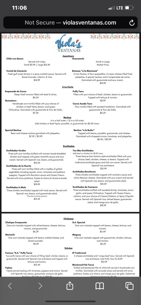 Viola's Ventanas is a Tex-Mex restaurant located in San Antonio, Texas, offering a variety of delicious dishes and amenities. The menu includes appetizers like Chile con Queso and Coctel de Camaron, as well as a la carte options such as Empanada de Carne and Quesataco. Nacho lovers can indulge in Nachos "A la Butler" or the Special Nacho Bean. The restaurant features a full bar, outdoor seating, and is Latinx-owned, adding to its unique charm. With options for vegan and limited vegetarian diets, Viola's Ventanas caters to a diverse range of preferences. Whether you're looking for a casual meal, happy hour specials, or catering services, this restaurant has something for everyone. Overall, Viola's Ventanas is a must-visit spot for Tex-Mex cuisine lovers looking for a flavorful and authentic dining experience.